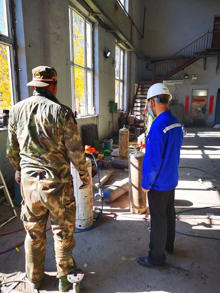 檢查未發現重大安全隱患。但檢查中發現,供熱管網互聯互通工程施工現場所用氣瓶未按要求放置,東河苑小區換熱站施工人員未戴安全帽及違規用電,四醫院燃氣鍋爐房施工所用乙炔、氧氣瓶安全距離不夠及施工人員未戴安全帽等安全隱患。劉堅在現場責令施工單位和人員按照要求進行整改,并下發整改通知,確保施工安全,杜絕安全隱患。