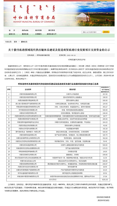國家財政部與商務部聯(lián)合發(fā)布《關于開展2018年流通領域現(xiàn)代供應鏈體系建設的通知》(財辦建〔2018〕101號),商務部發(fā)布《關于2018年流通領域現(xiàn)代供應鏈體系建設試點工作有關要求的通知》(商建司函[2020]104號),經(jīng)過評審,呼和浩特市成為試點城市,納入財政資金支持范圍。呼市商務局聯(lián)合市財政局組織開展了"呼和浩特市流通領域現(xiàn)代供應鏈體系建設及促進商貿流通行業(yè)發(fā)展項目"申報工作,開始全面推進流通領域現(xiàn)代供應鏈體系建設試點示范工作。