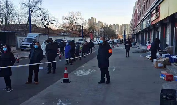 "沒事兒,天氣冷我堅持堅持就過去了,只希望疫情能快點兒結束。"2月28日下午,筆者在電子廠小區北口見到了正在寒風中執勤的新華東街分公司員工高晶晶。交談中筆者了解到,她每班要在這里堅守六個小時,沒有帳篷、也沒有取暖設備,看著她凍紅的雙手,聽著她沙啞的聲音,筆者叮囑她要多喝水,高晶晶說:"我這里離衛生間還有一段距離,所以我盡量不喝水,以免漏檢一人。"