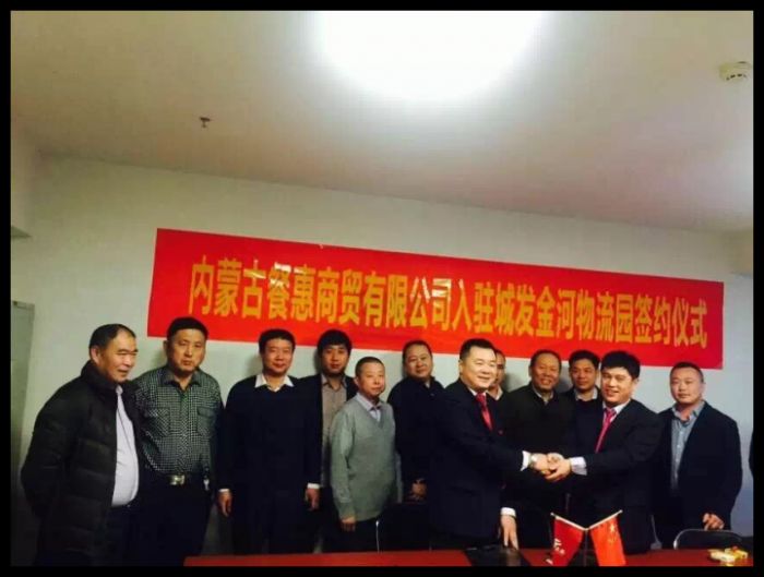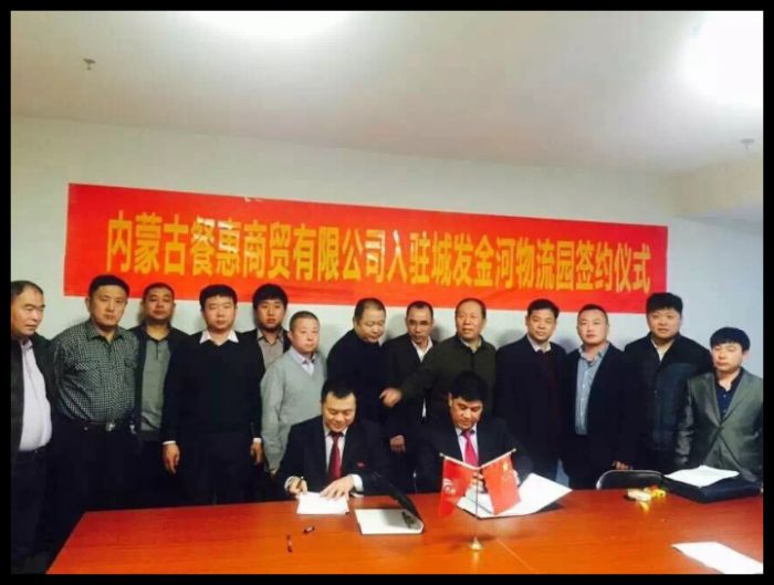 ,在城發大廈18樓會議室城發物流公司經理史士林與內蒙古餐惠公司董事長陳耀簽訂了入駐金河物流園的協議。