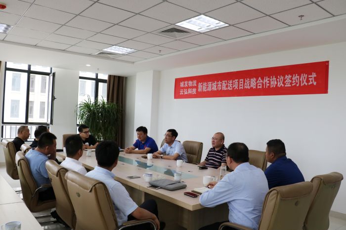 2018年5月16日下午,城發物流公司與內蒙古云弘科技有限責任公司就新能源城市配送項目簽訂了戰略合作協議。