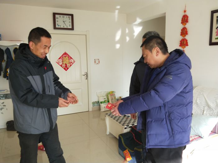 129午,辛家營分公司黨支部書記、工會主席王軍,工會副主席王學達,黨群處任淑欣一行辛家營分公司趙錦平等4名困難職工進行春節前慰問。