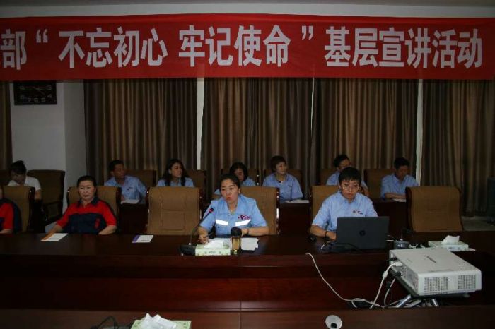 6月17日,城發(fā)物業(yè)公司黨支部開展“不忘初心 牢記使命 爭做最美物業(yè)人”基層宣講活動。活動由物業(yè)公司黨支部書記娜仁同志主講,物業(yè)公司基層的員工代表及合同制員工共計82人參加了宣講活動。