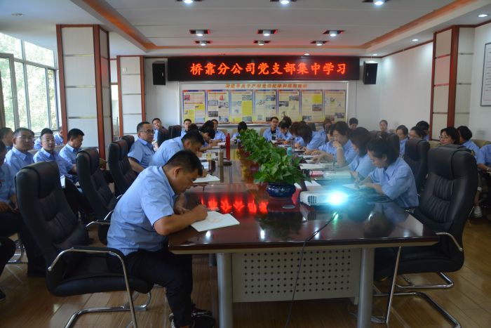 9月5日下午3點,橋靠分公司黨支部組織黨員、預備黨員、發展對象、積極分子50人在行政樓三樓會議室組織集中學習,會議由黨支部書記趙怡春主持。