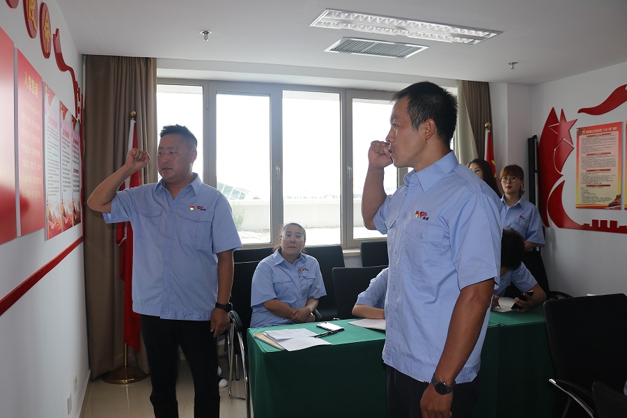 7月30日,客運公司黨支部組織全體黨員、預備黨員、發展對象、積極分子共16人開展預備黨員宣誓暨黨支部換屆集體學習活動。